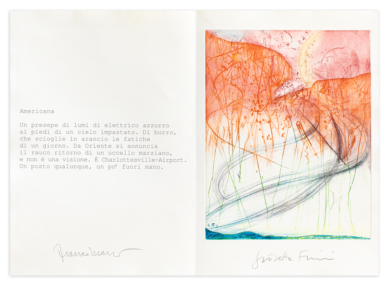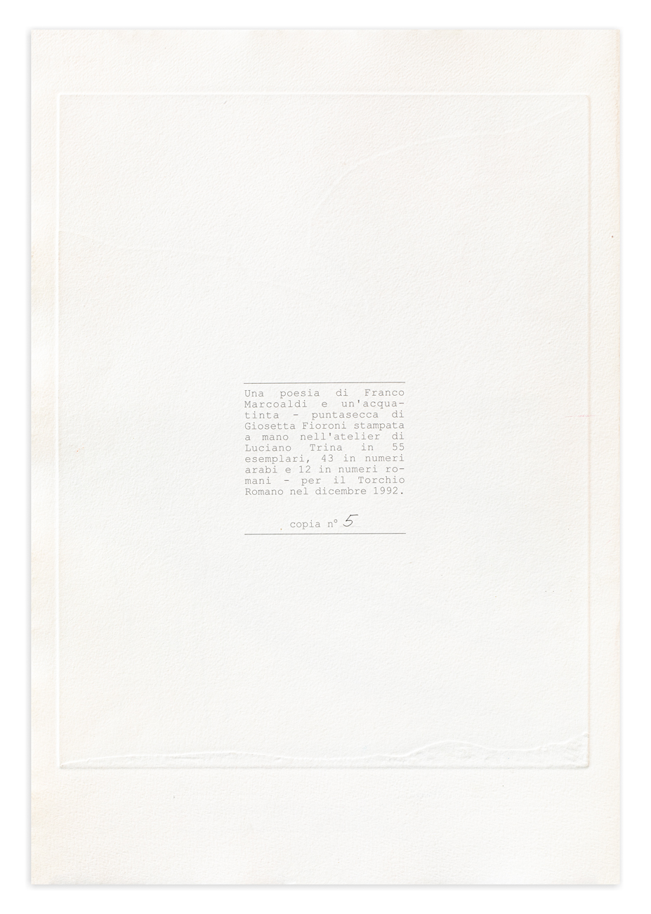 Acquatinta a punta secca su pieghevole con poesia di Franco Marcoladi