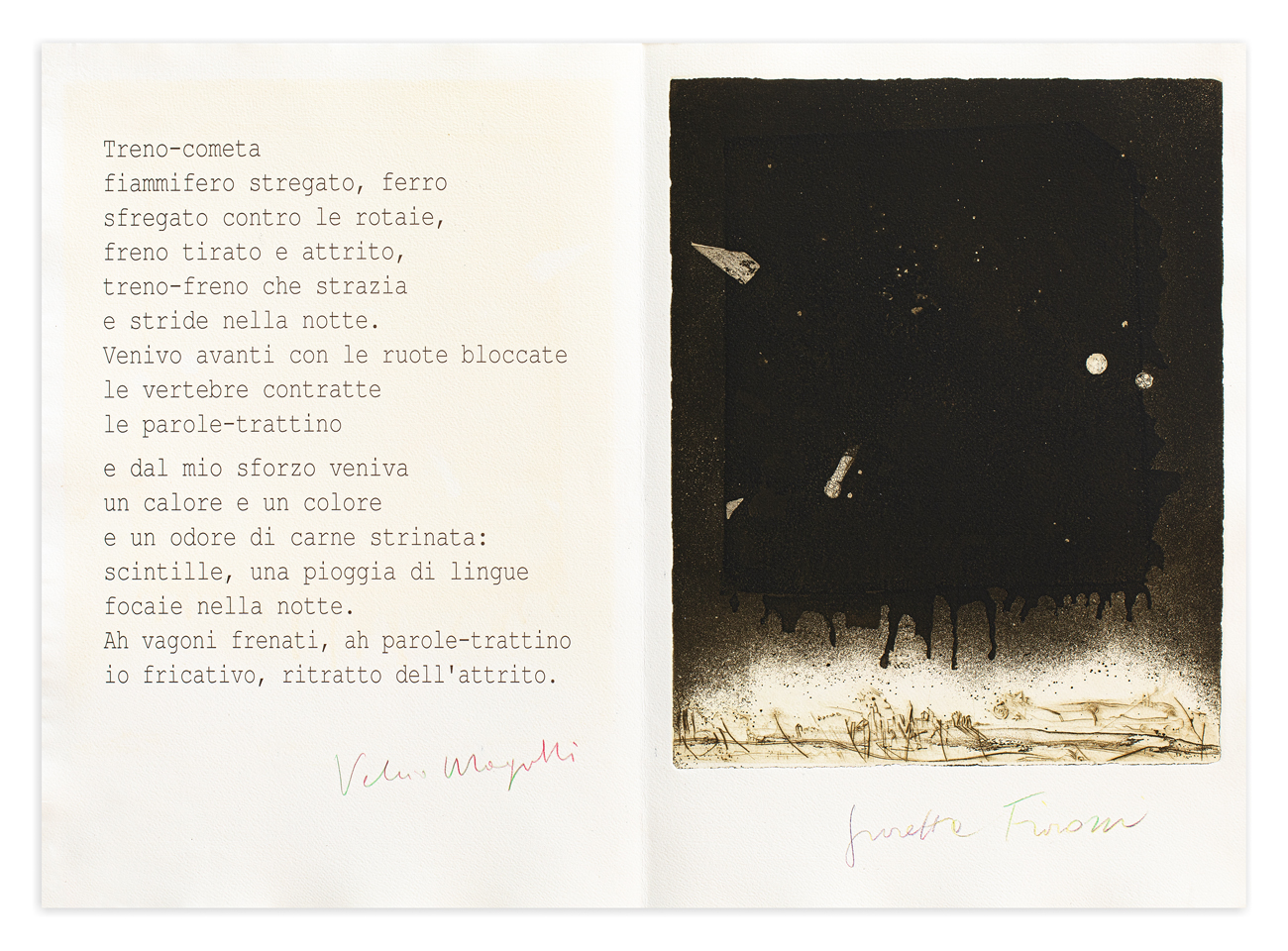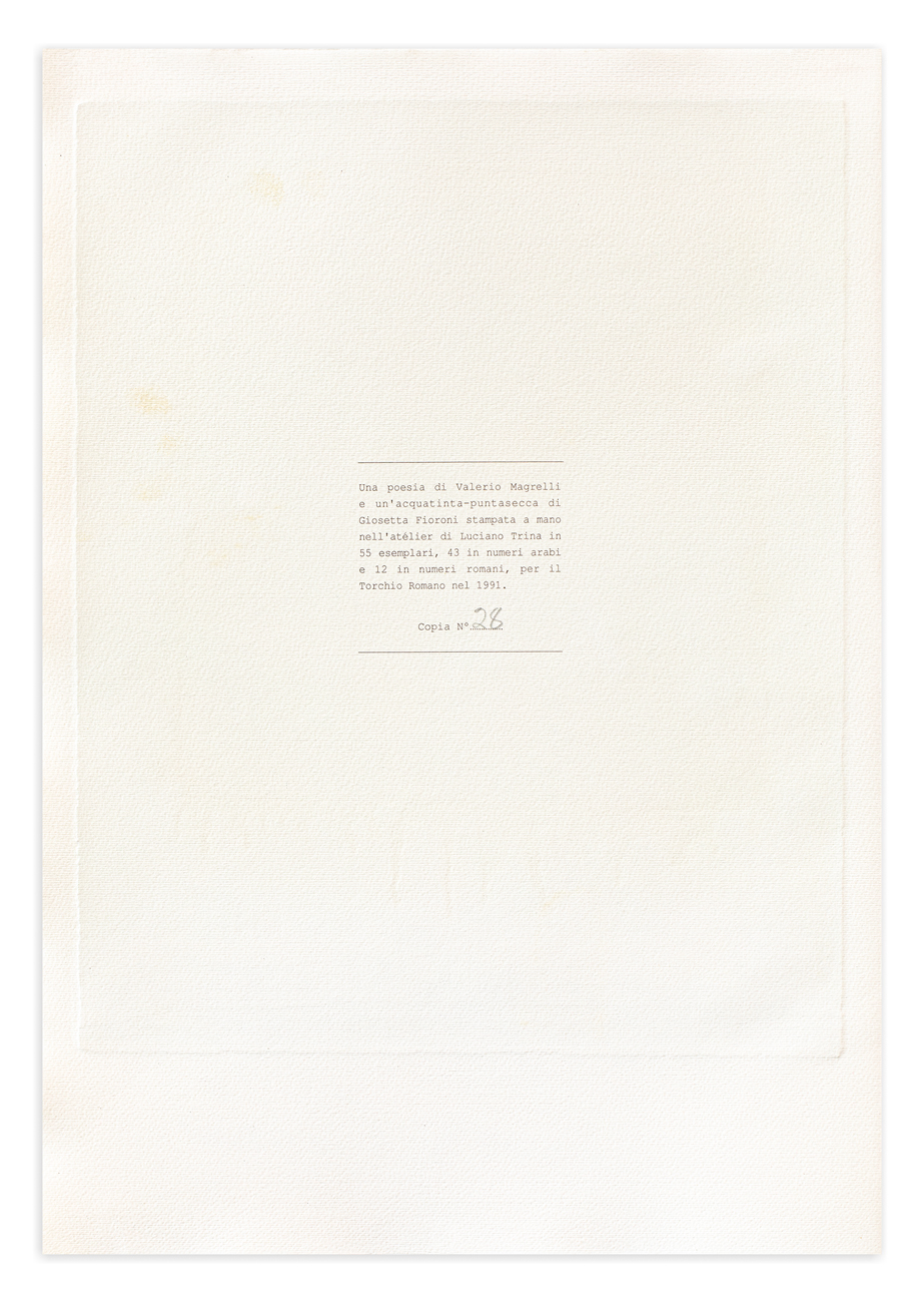 Acquatinta a punta secca su pieghevole con poesia di Valerio Magrelli