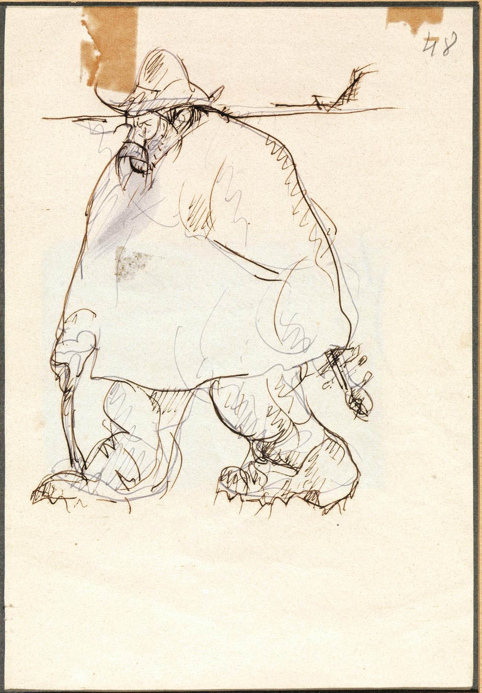 Penna e inchiostro bruno. mm 175x270. Al verso timbro della galleria “La navicella” di Viareggio.