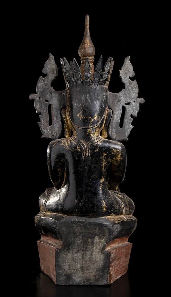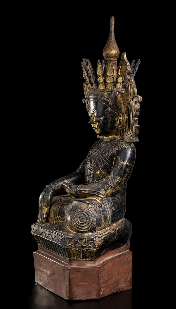 <br>BUDDHA SEDUTO IN LEGNO LACCATO E DORATO<br>Birmania, stile Shan, XIX-XX secolo