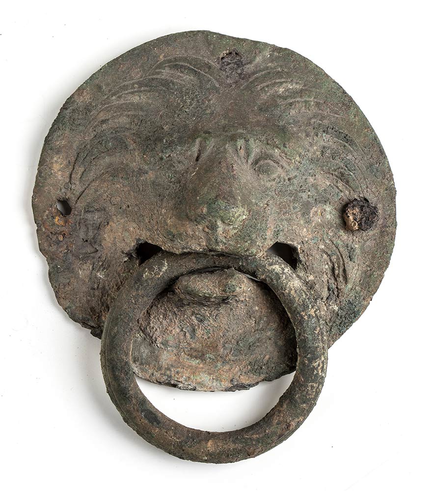 <br>GRANDE APPLIQUE IN BRONZO CON PROTOME LEONINA<br>Epoca romana imperiale