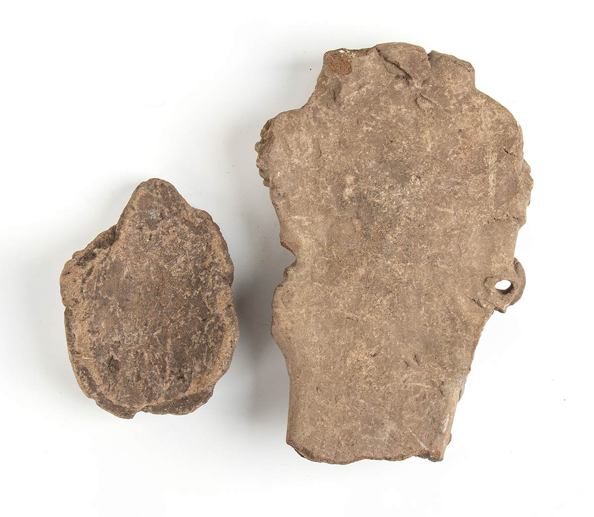 <br>COPPIA DI STATUETTE IN TERRACOTTA<br>Messico, Cultura classica di Veracruz<br>alt. cm 14 e 25,5; spessore cm 1 - 3,5<br><br>Intatti.<br><br>Dalla collezione di Maria Pia e Amintore Fanfani.