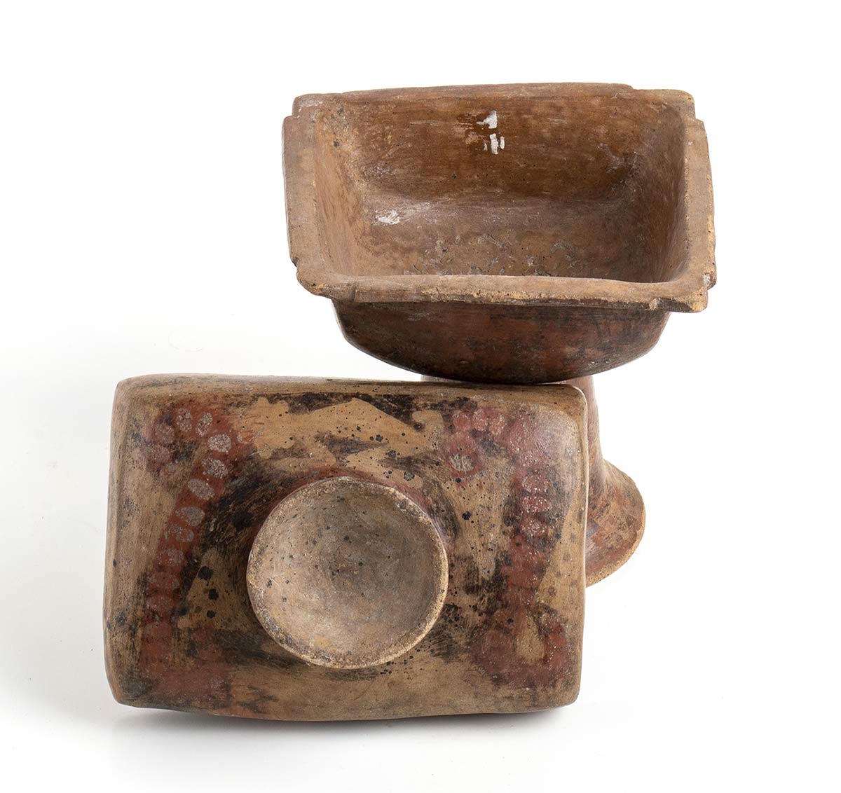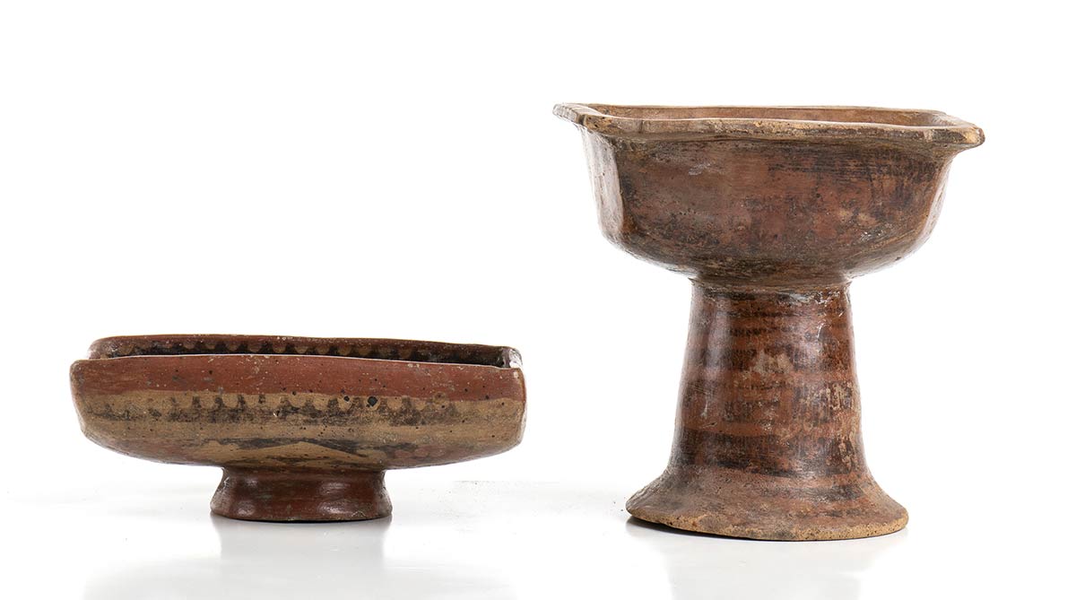 <br>COPPIA DI VASI POLICROMI<br>Colombia, Area di Nariño<br>alt. massima cm 14<br><br>Poche sbeccature sulla coppa ad alto piede.<br><br>Dalla collezione di Maria Pia e Amintore Fanfani.