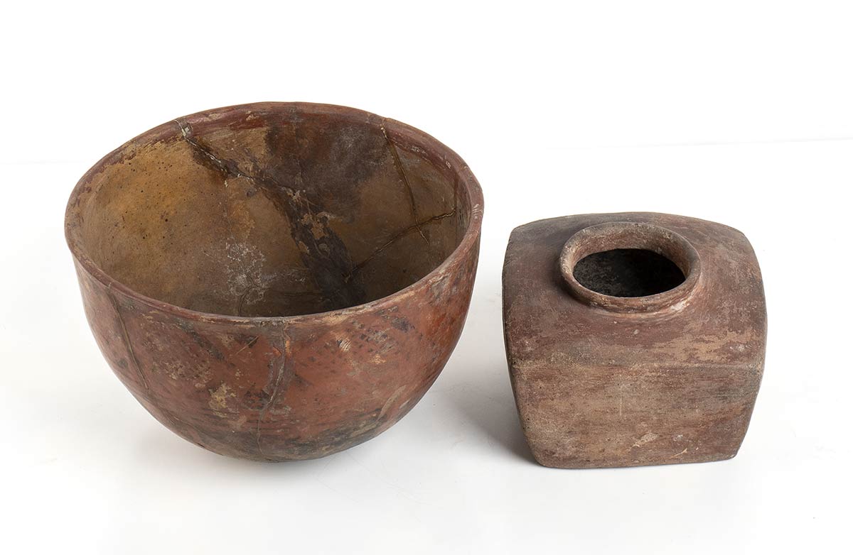 <br>COPPIA DI VASI POLICROMI<br>Colombia, Area di Nariño<br>alt. massima cm 13; diam. massimo cm 20,5<br><br>Restauri ricostruttivi e integrativi sparsi.<br><br>Dalla collezione di Maria Pia e Amintore Fanfani.