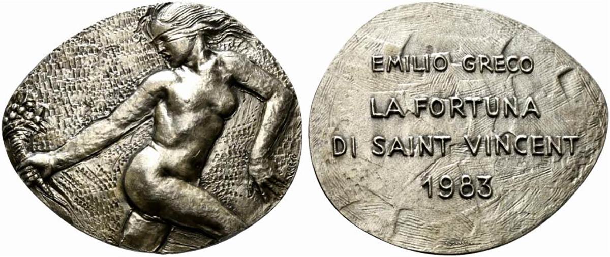 <br>AOSTA. Medaglia 1983 La Fortuna di Saint Vincent. AE argentato (303 g - 66x81 mm) Opus Greco.