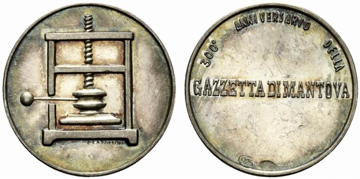 <br>MANTOVA. Medaglia 300° anniversario della Gazzetta di Mantova. Ag (14,2 g - 32 mm).