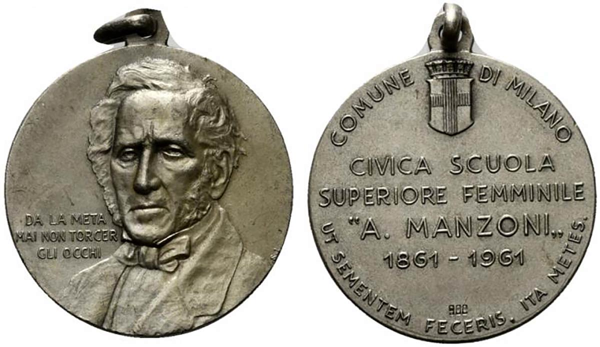 Lot 144 | <br>MILANO. Comune di Milano. Medaglia Civica Scuola Superiore Femminile "A. Manzoni" 1961. Ag (15,2 g - 32,2 mm).