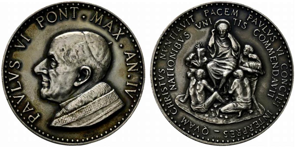 ROMA. PAOLO VI. Medaglia Visita all'ONU anno IV. QVAM CHRISTVS NVNTIAVIT PACEM PAVLVS VI CONCILI INTERPRES. Ag (40,6 g - 44 mm) Opus Minguzzi. BART. E 966. SPL