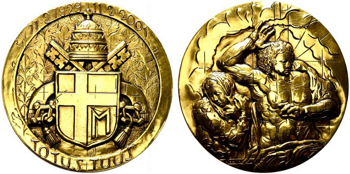 <br>ROMA. Giovanni Paolo II (1978-2005). Medaglia 2001 Opus Senesi AE dorato (128 g - 60,3 mm). Con cofanetto.