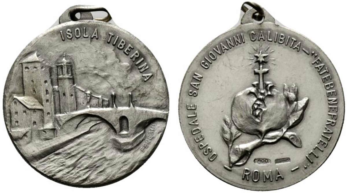 <br>ROMA. Isola Tiberina. Medaglia Ospedale San Giovanni Calibita FATEBENEFRATELLI. Ag (12,14 g - 30 mm).