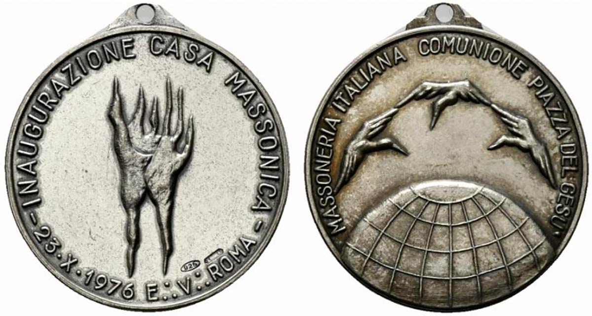 ROMA. Medaglia Massoneria Italiana Comunione Piazza del Gesù. Inaugurazione Casa Massonica 1976. Ag (14,54 g - 32,2 mm).