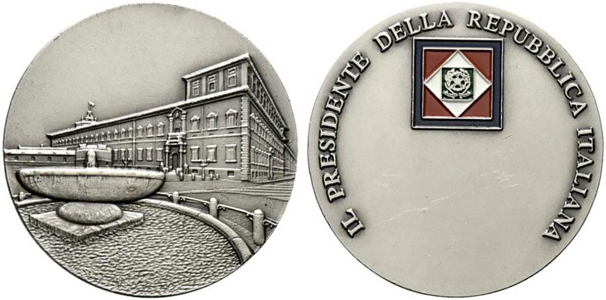 Lot 209 | <br>ROMA. Medaglia Presidente della Repubblica Italiana. Il Palazzo del Quirinale. Ag (71,72 g - 55 mm) opus MILLI. FDC con cofanetto.