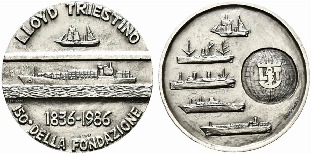 <br>TRIESTE. Lloyd Triestino. Medaglia 1986. 150° anniversario della fondazione Ag (27,2 g - 40,4 mm). Coniazione Johnson Opus Bernardi. FDC