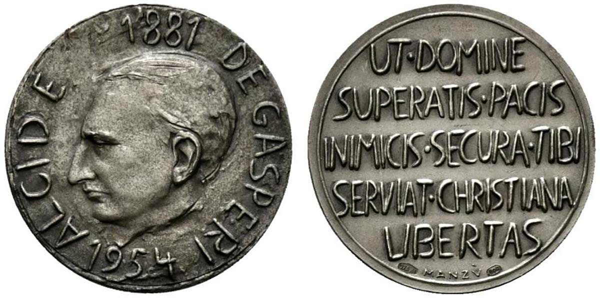 ALCIDE DE GASPERI. Medaglia 1954 Opus Manzu AG (12,73 g - 30,1 mm).
