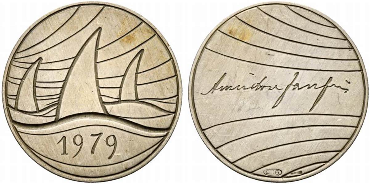 AMINTORE FANFANI. Medaglia 1979 nominativa con cofanetto siglato A.F. Ag (28,7 g - 44,7 mm).