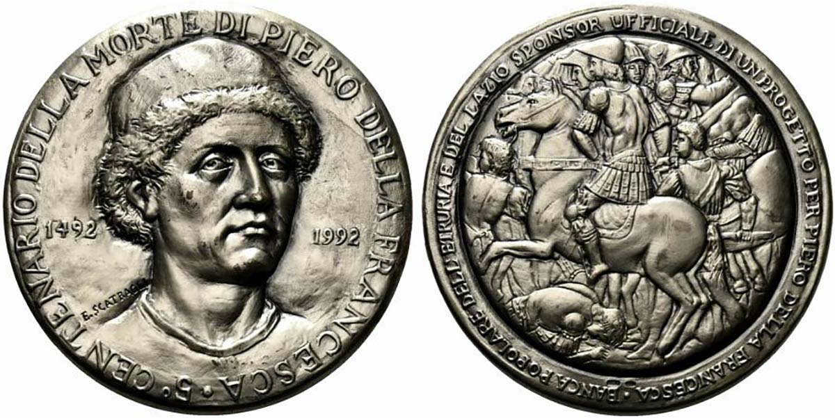 PIERO DELLA FRANCESCA. Medaglia 5° centenario della morte 1492-1992. Opus Scatragli Ag (146 g - 59,6 mm)