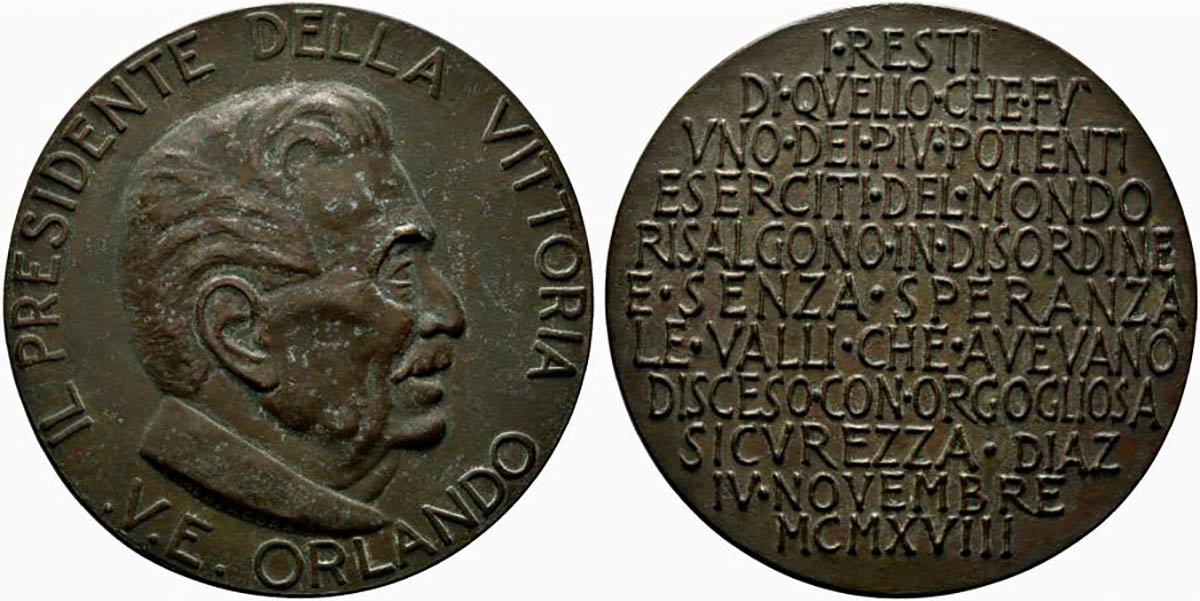 <br>VITTORIO EMANUELE ORLANDO (1860-1952) politico, giurista e docente italiano. Medaglia commemorativa AE (290 g - 97,5 mm) Opus C.Merzacora
