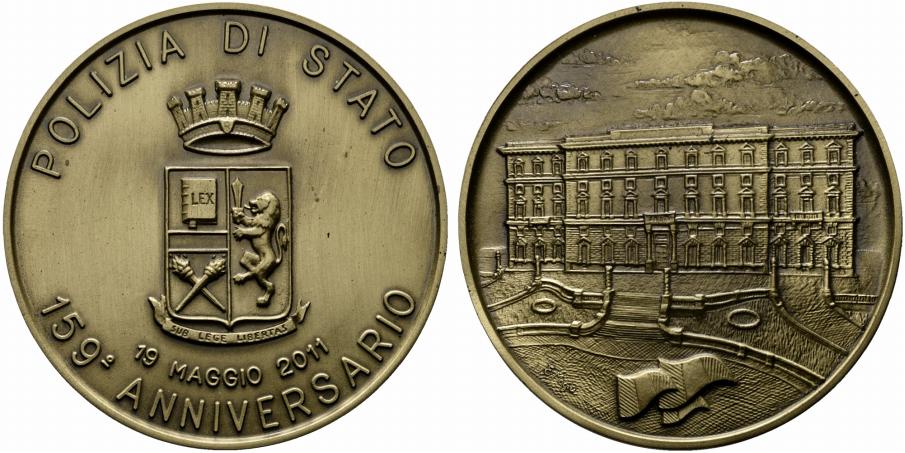 Lot 266 | <br>POLIZIA DI STATO. Medaglia 159° anniversario 19 maggio 2011. R/palazzo del Viminale. Opus Magni. AE (102 g - 60,5 mm). Con scatola.