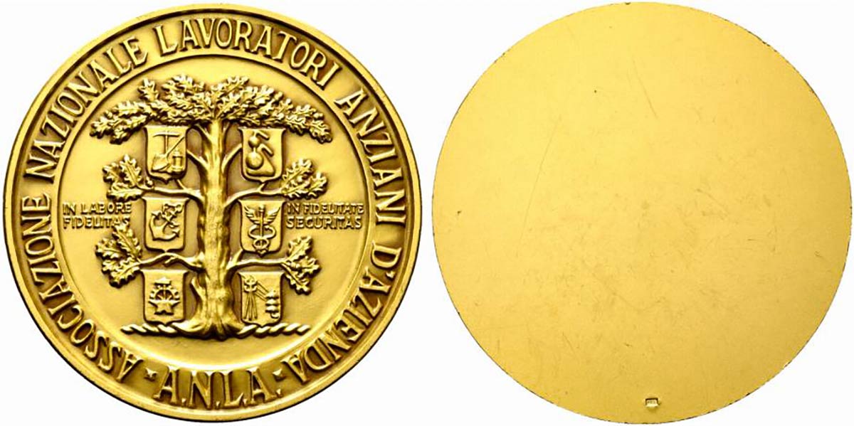 ASSOCIAZIONE NAZIONALE LAVORATORI ANZIANI D'AZIENDA. Medaglia AE dorato (218 g - 79,40 mm)