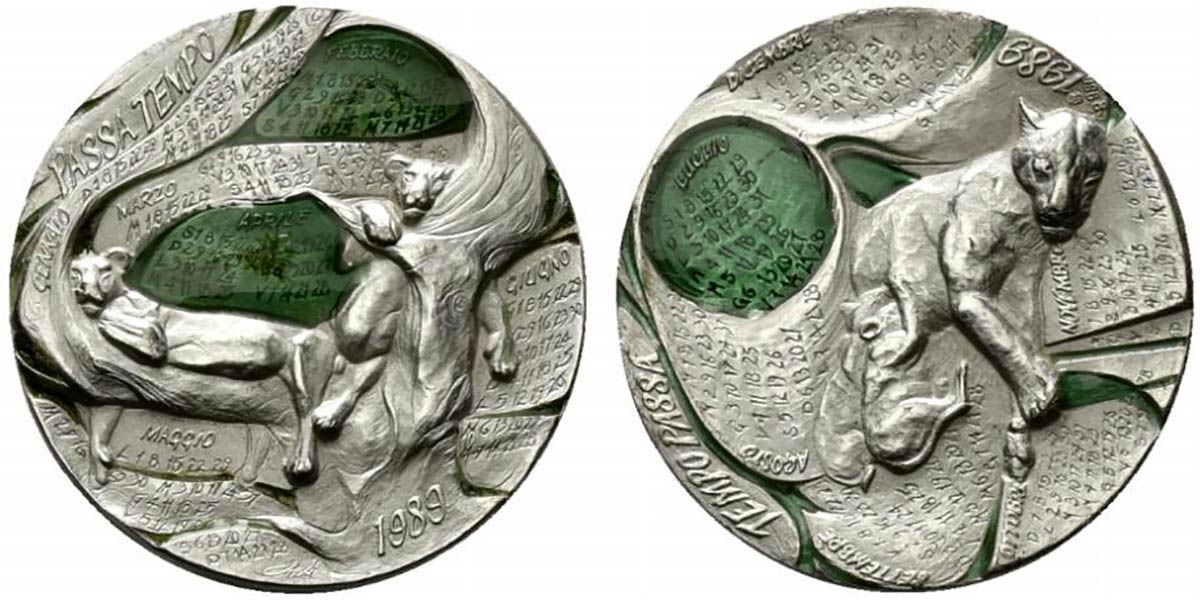 Medaglia Calendario 1989. Opus Cheli. Ag con smalto (28 g - 31 mm).