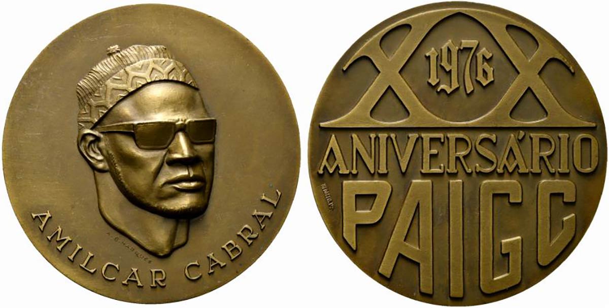 <br>GUINEA E CAPO VERDE. AMILCAR CABRAL. Medaglia1976 XX anniversario PAIGC Partito Africano per l'Indipendenza della Guinea e di Capo Verde. AE (187 g - 79,8 mm).