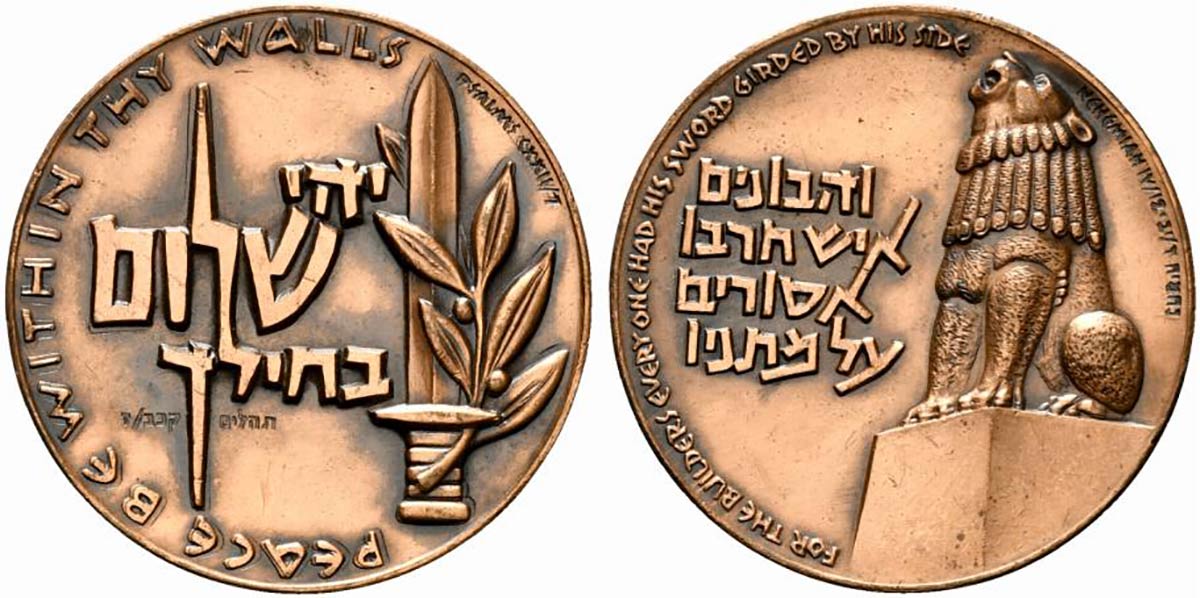 ISRAELE. Medaglia 1958 PEACE BE WITHIN THY WALLS. AE (131 g - 59,3 mm).