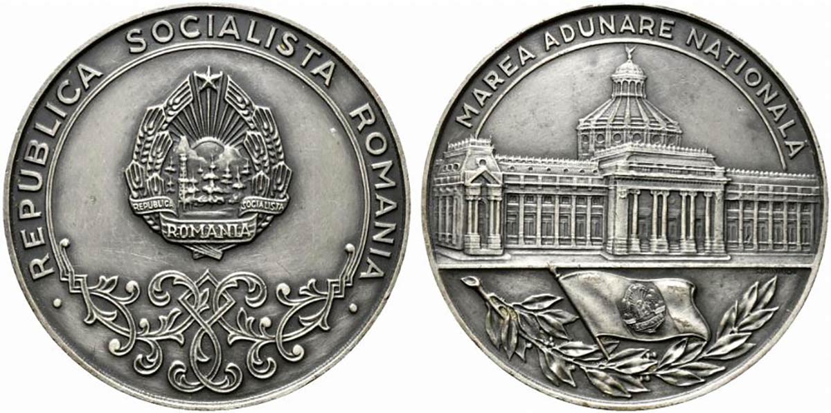 <br>ROMANIA. Medaglia MAREA ADUNARE NATIONALA (Grande Assemblea Nazionale). AE argentato (148 g - 69,9 mm).