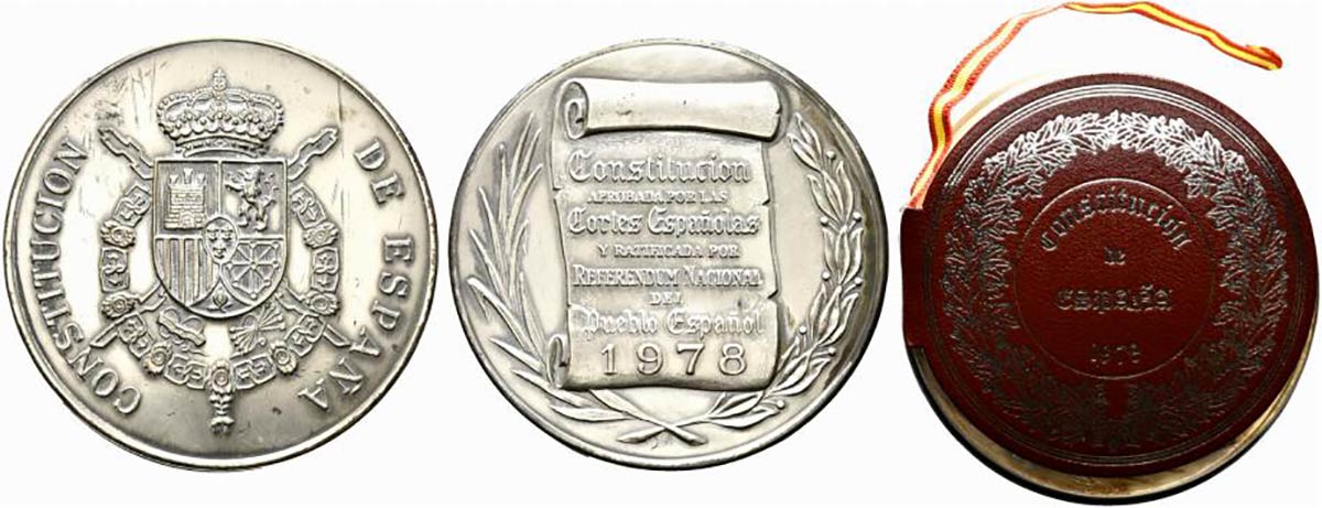 Lot 349 | <br>SPAGNA. Costituzione di Spagna 1978, con scatola in metallo (80 mm - 97,84 g)