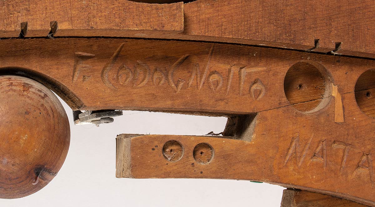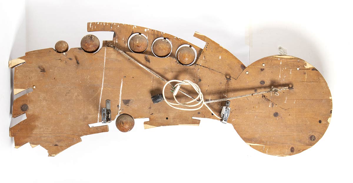 Buone condizioni, qualche rottura sul legno e leggere mancanze. Al retro è presente un meccanismo elettrico e due luci (meccanismo non funzionante)