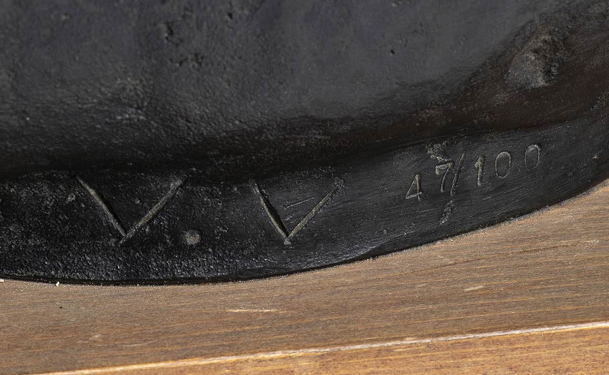 Scultura in bronzo su base lignea, 18 x 16 x 19 cm