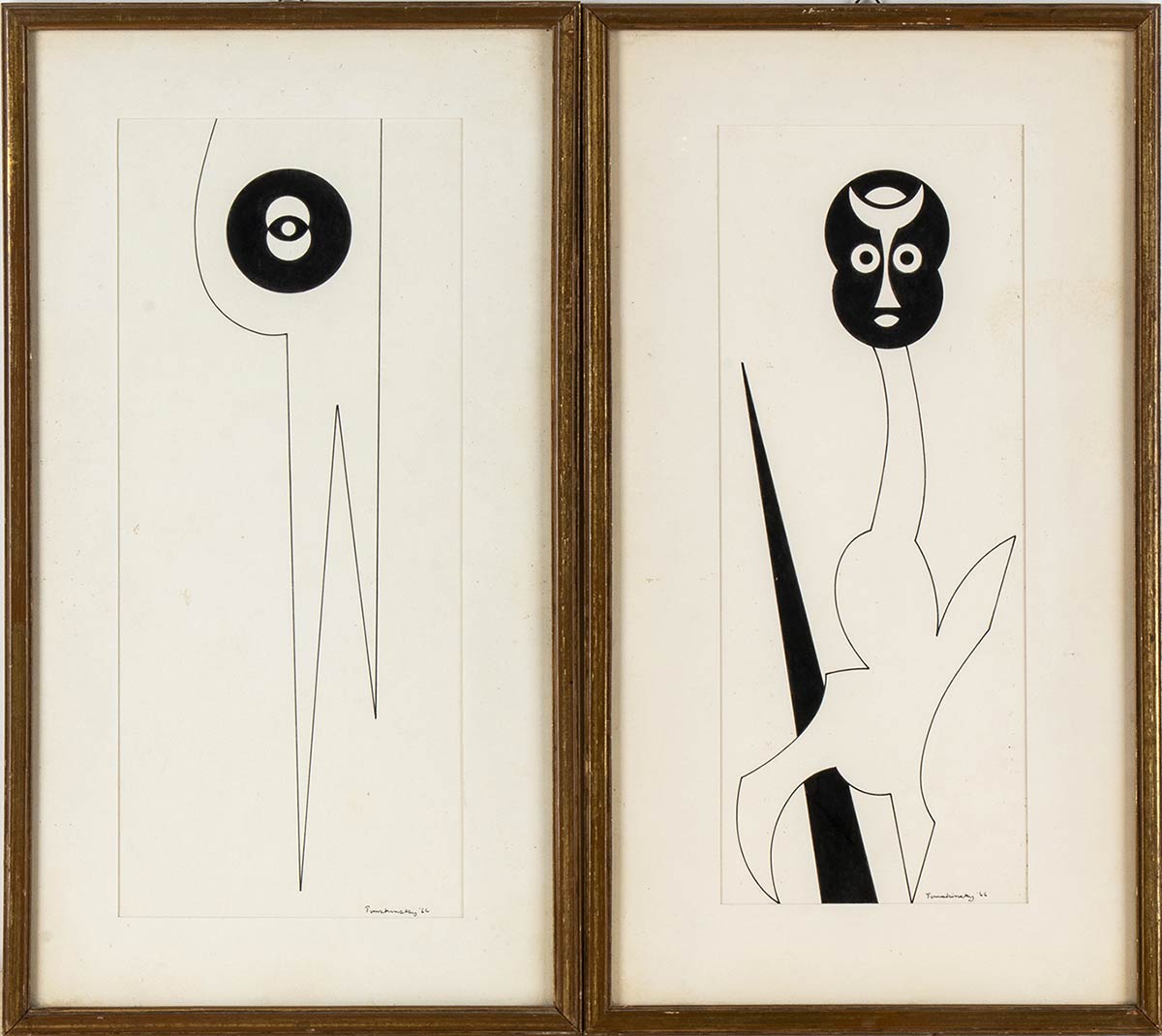 TRUMKINSKY (XX Secolo)<br>Coppia di disegni con figure stilizzate, 1966
