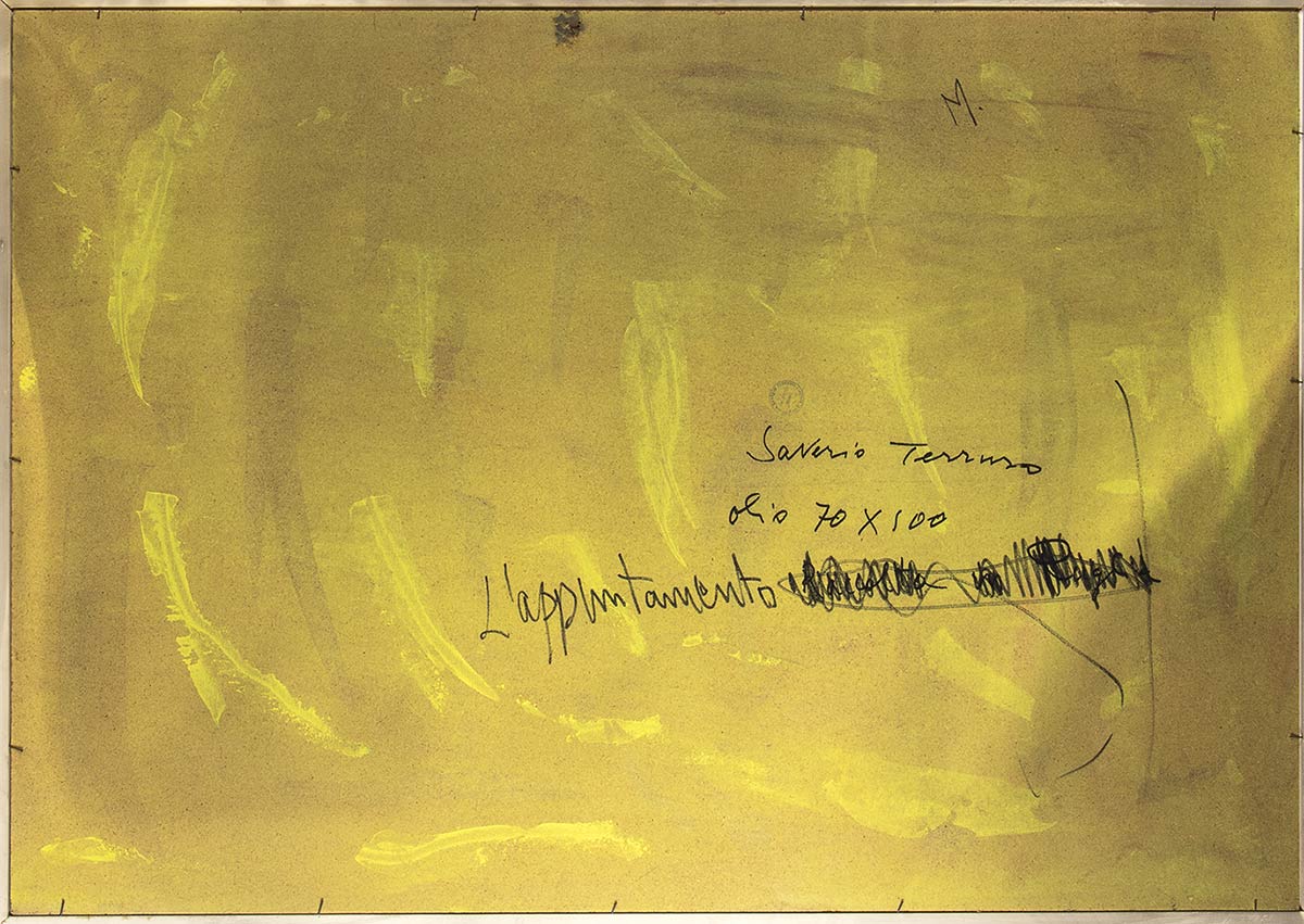Firma, titolo e timbro al retro: Saverio Terruso, L'appuntamento, Milano