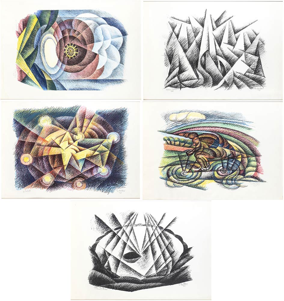 GERARDO DOTTORI (Perugia, 1884 - 1977) <br>Cinque litografie con composizioni astratte, 1969