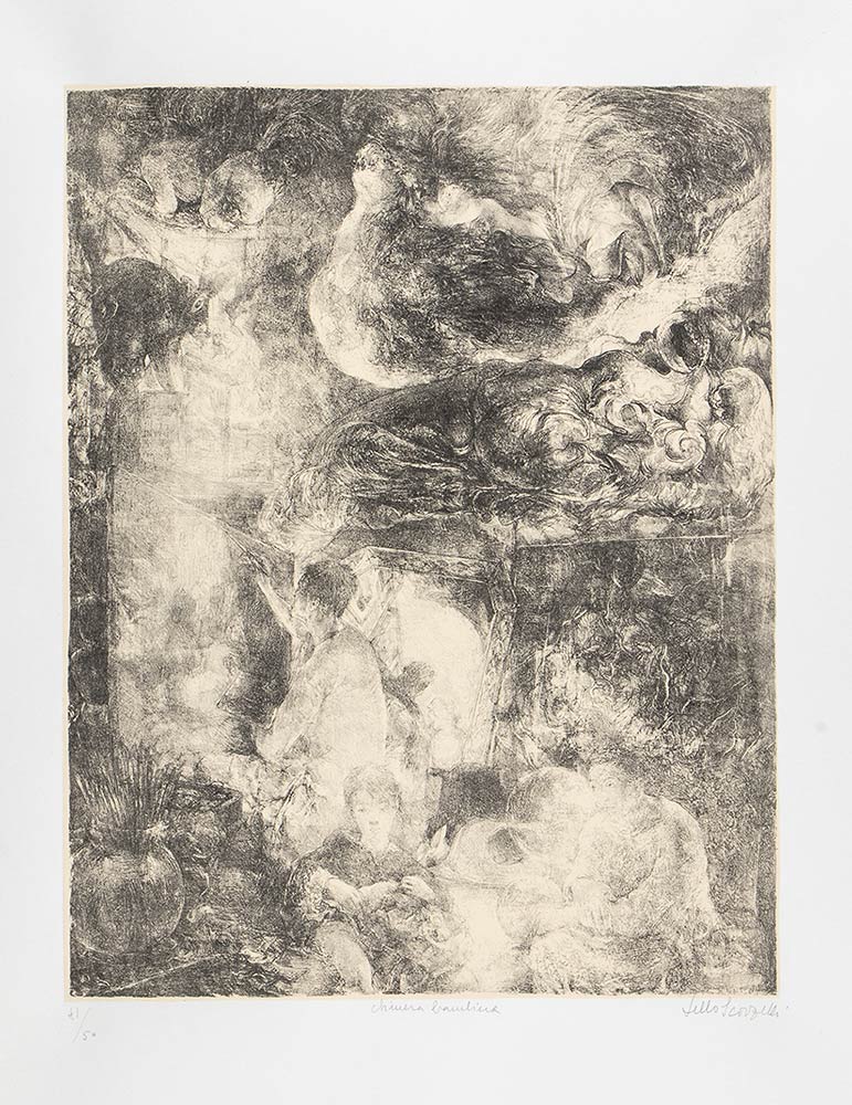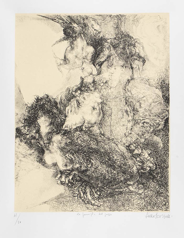 Firma e n° esemplare in basso: Lello Scorzelli, 41/50. Timbro a fuoco LS.