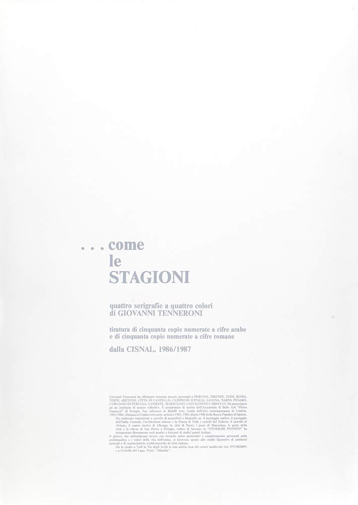 GIOVANNI TENNERONI (XX Secolo)<br>Cartella originale con quattro serigrafie tratte "Come le stagioni", 1986-87