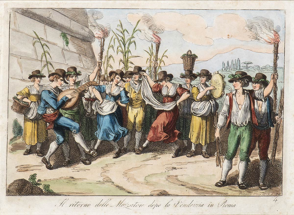BARTOLOMEO PINELLI (Roma, 1781 - 1835)<br>Ritorno delle mozzatore dopo la vendemmia in Roma, 1815
