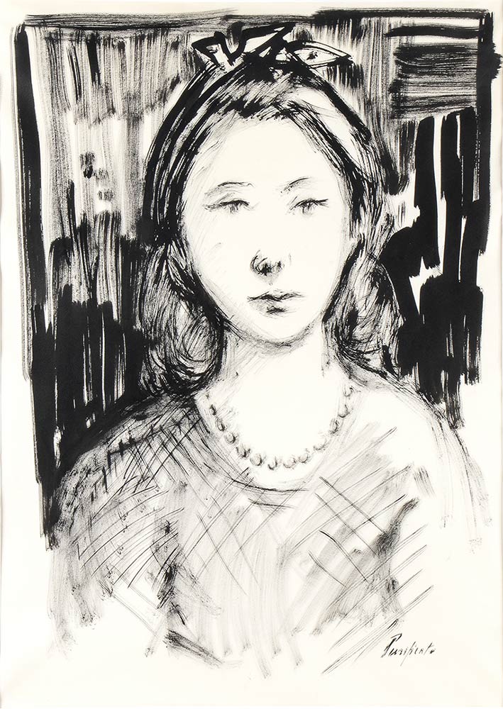 DOMENICO PURIFICATO (Fondi, 1915 - Roma, 1984)<br>Volto di ragazza con collana