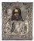 Icona russa con riza in argento raffigurante Cristo Pantocratore - San Pietroburgo 1853