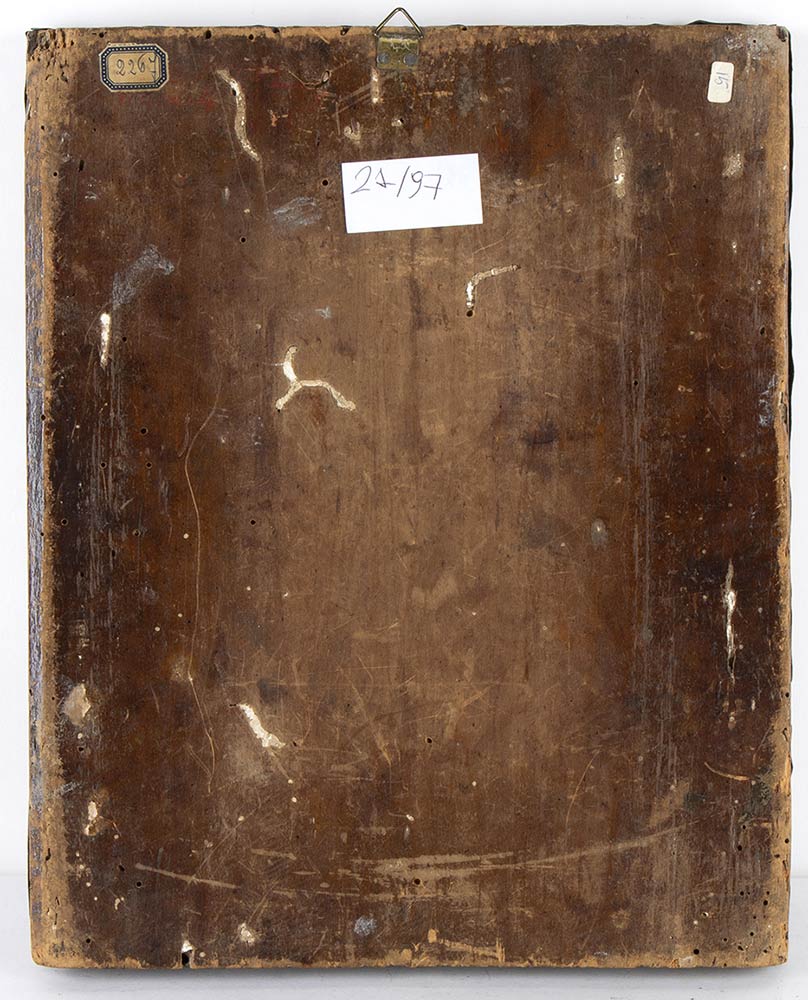 tempera su tavola con riza in metallo, raffigurante Richiesta di grazia alla Madonna. Dimensioni 34 x 27 x 2,8 cm. Stato di conservazione: **** buono.