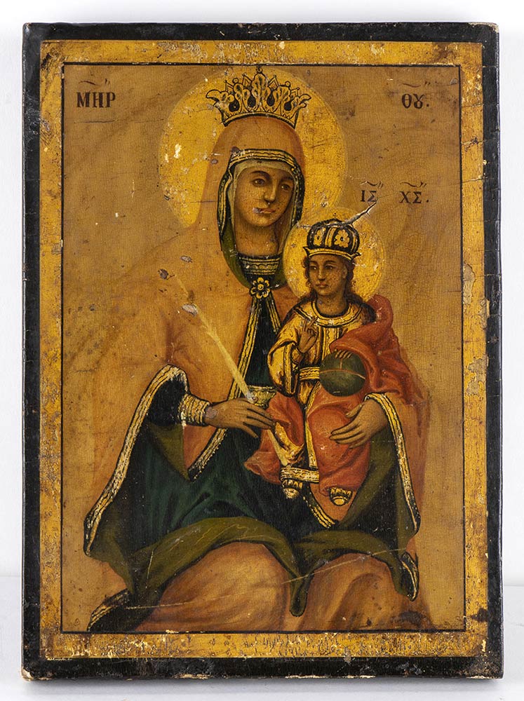 <br>Icona raffigurante Madonna incoronata con Bambino - Balcani, XVIII secolo