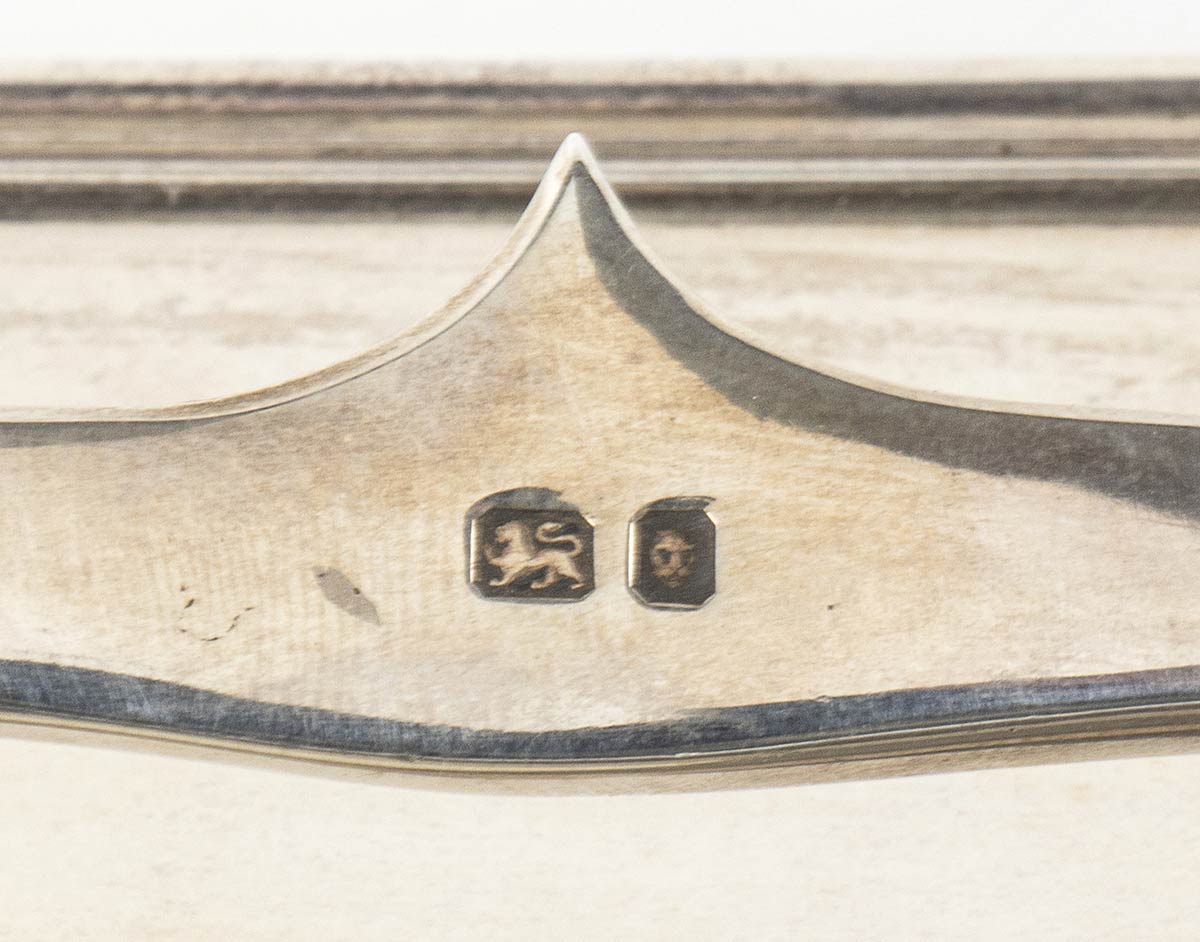 di forma rettangolare, poggiante su quattro piedi ad artiglio, recante una iscrizione dedica di Lord Maurice Harold Macmillan, primo ministro del Regno Unito dal 1957 al 1963 ad Amintore Fanfani: "To my friend and collegue Amintore Fanfani as a memento of a very happy visit to Rome and as a token of the friendship which links our two countries - Harold Mcmillian, February 1963". Serie completa di marchi Londra 1962-63, argentiere Garrard & Co. Dimensioni 5,8 x 28 x 18 cm. Peso lordo 2733 gr, peso netto 2266 gr. Stato di conservazione: **** buono.