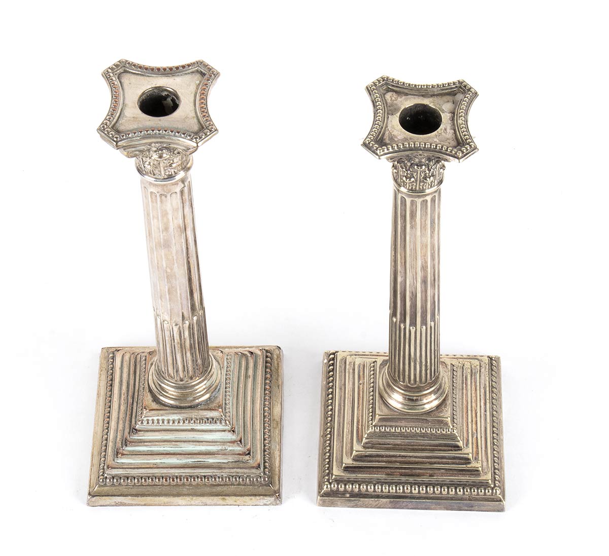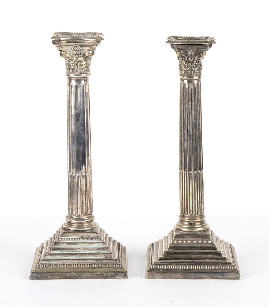 Coppia di candelieri inglesi in metallo argentato - 1900 circa
