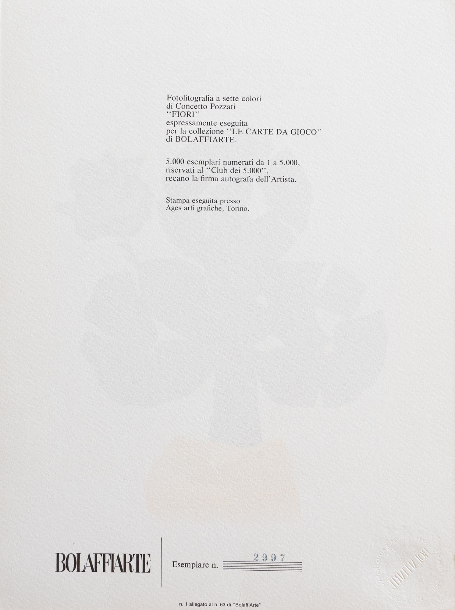 CONCETTO POZZATI, Fiori eseguita per la serie "CARTE DA GIOCO DI BOLAFFIARTE"