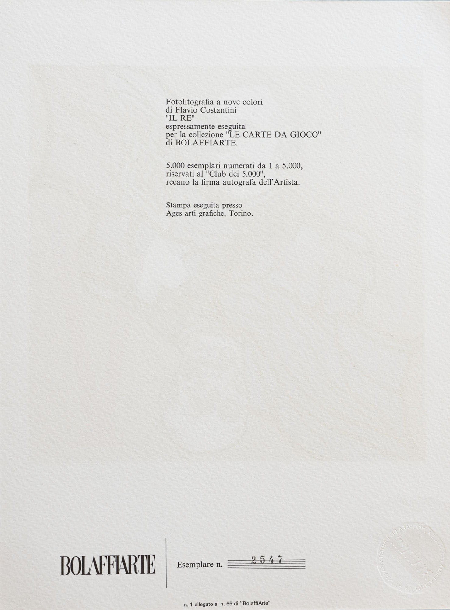 FLAVIO COSTANTINI, Il Re eseguita per la serie "CARTE DA GIOCO DI BOLAFFIARTE"