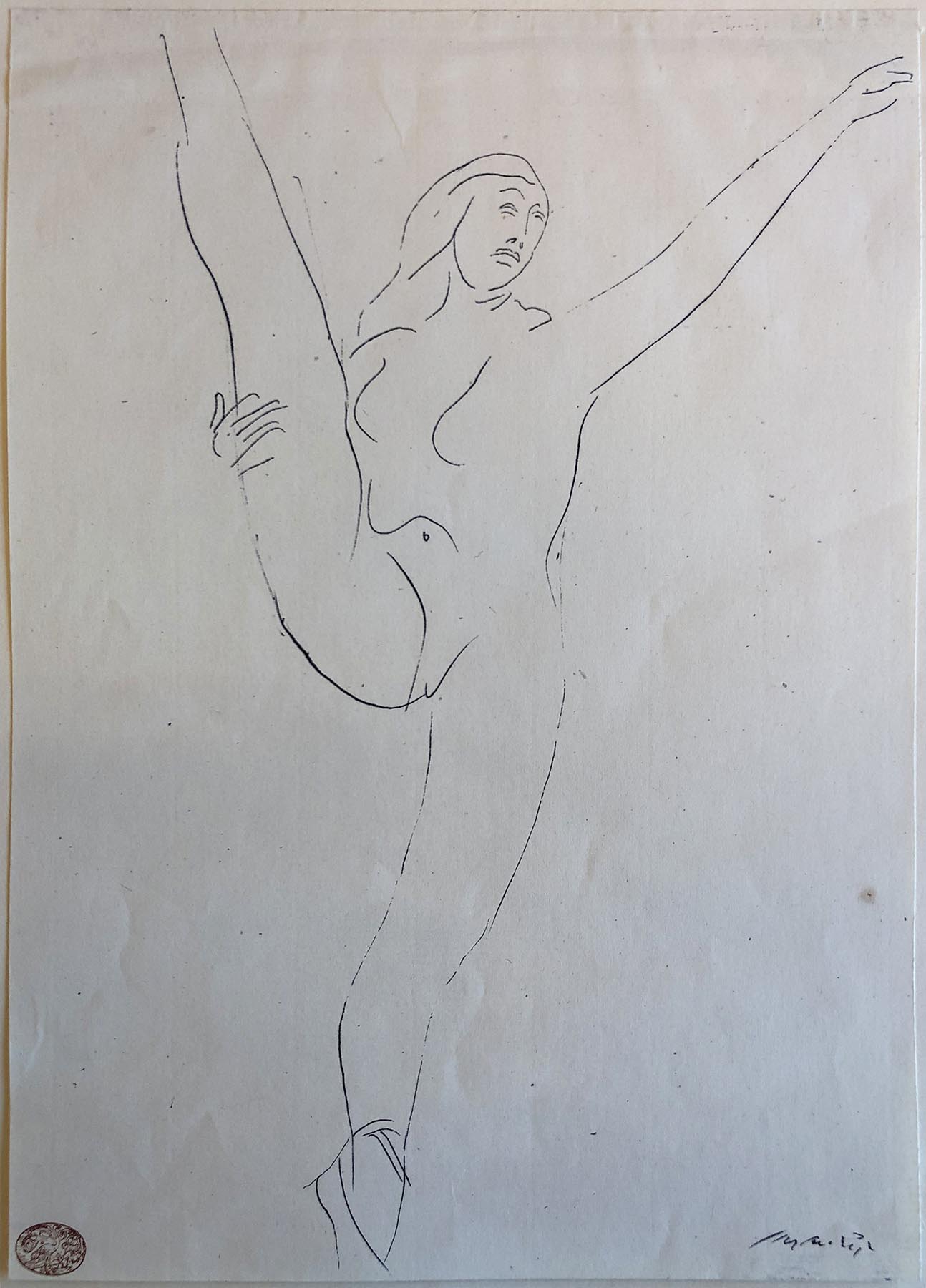 Esemplare proveniente dalla cartella "Quarantun disegni di Giacomo Manzù presentati da Cesare Brandi", Torino, Giulio Einaudi Editore, 1961. Firmato in basso a destra
