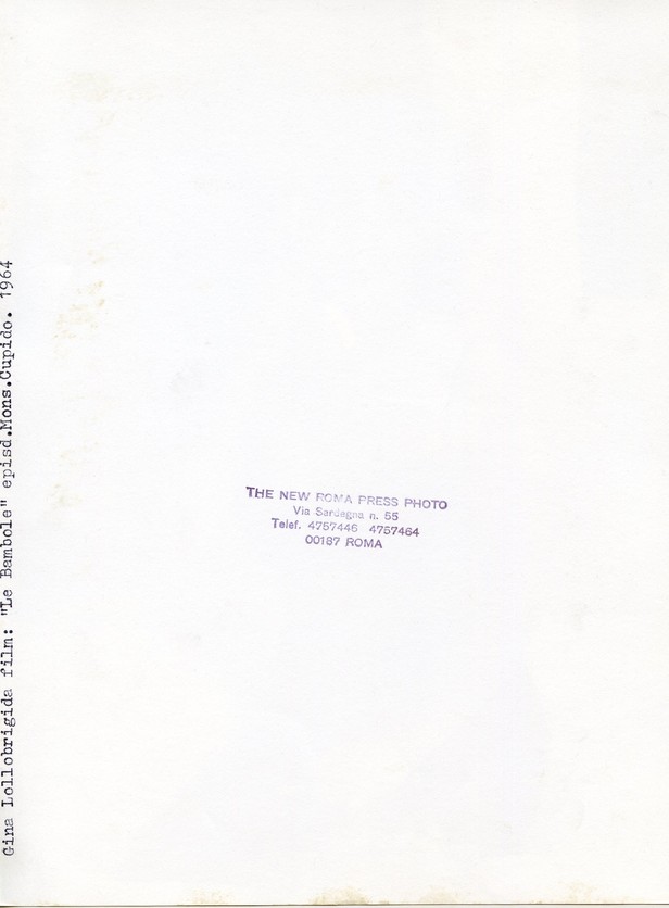 Gina Lollobrigida during " le Bambole". Print on single coated paper. Agency stamp on back " The New Roma Press Photo". Perfect conditions 1964 18 x 24