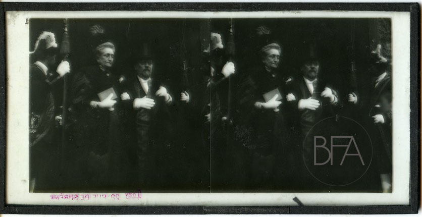 Portrait of Emile Zola during funeral ceremony of Victor Hugo. Stereoscopic glass positive trasparency. Excellent conditions 1885 double 7,5 x 7