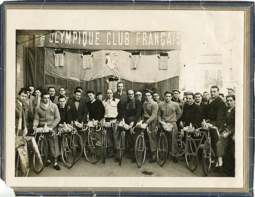 Portrait of Olympique Club Française of cyclist. Print on single coated paper applied on paper. Folds and smal cuts on passepartout, print in very good conditions 1930 ca. 26 x 20