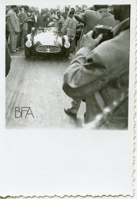 Unknown driver on Maserati A6 GCS. Small print on Agfa Lupex single coated paper. Excellent conditions 1950 ca. 6 x 9