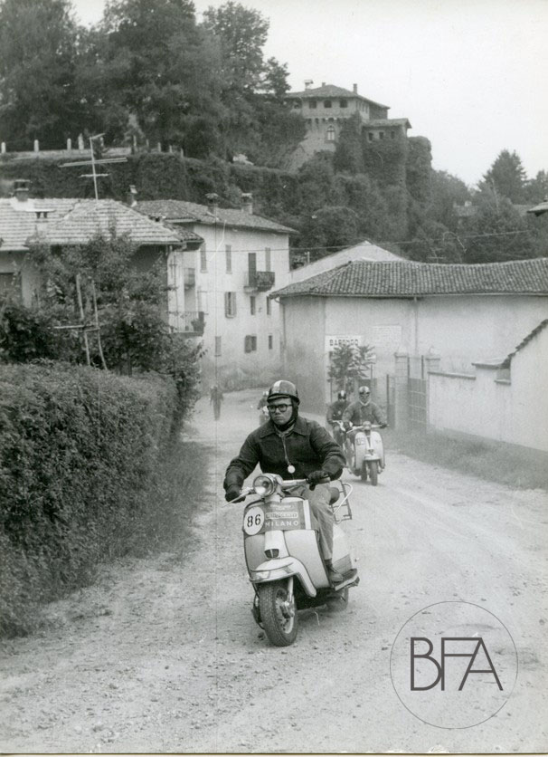 Lambretta Club Milano, portraits of driver during a time-trial competition and ceremony.
